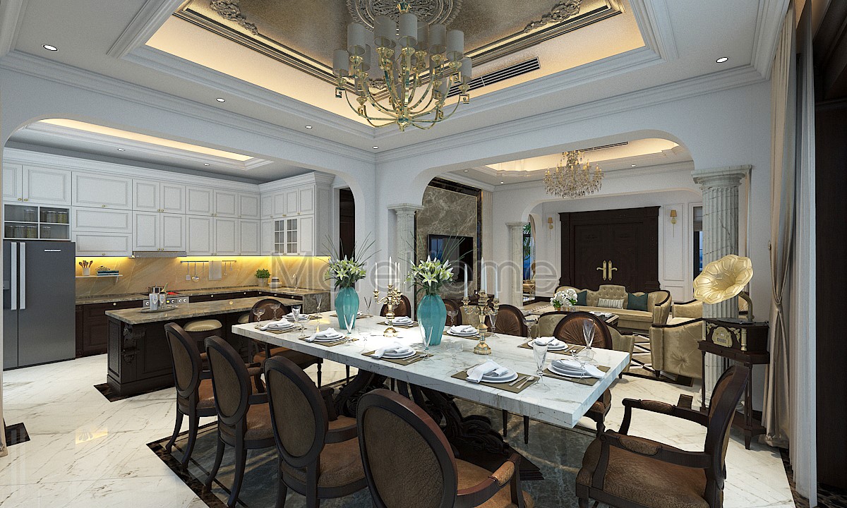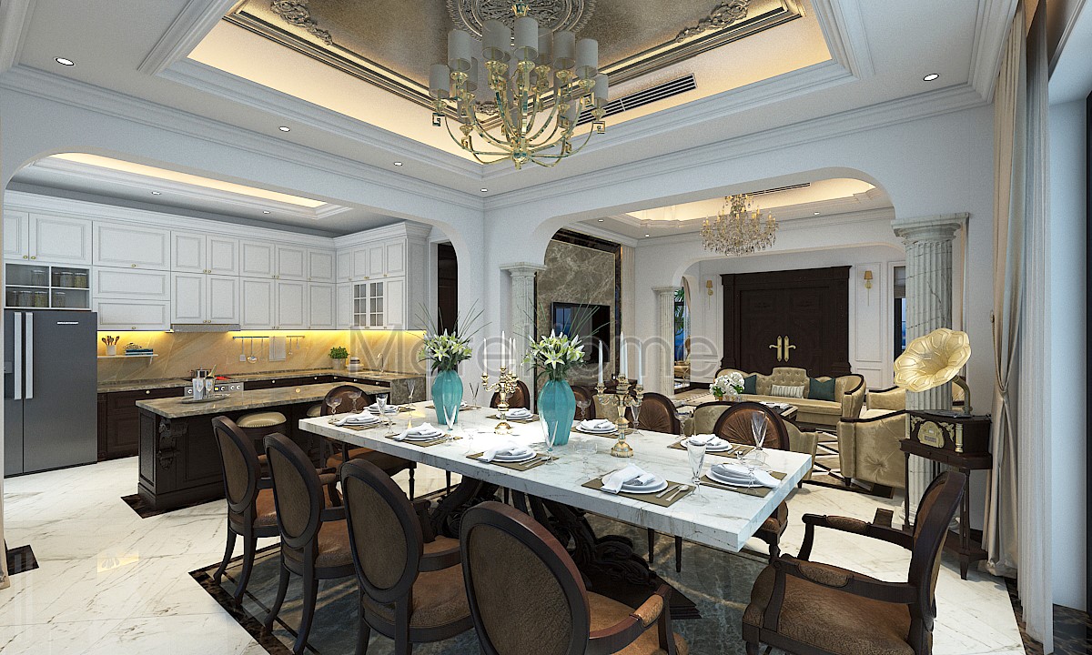 Mẫu bàn ăn đẹp cho biệt thự Vinhome Central Park Tân Cổ Điển
