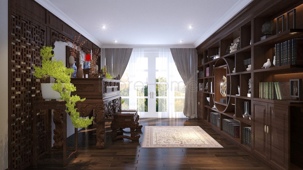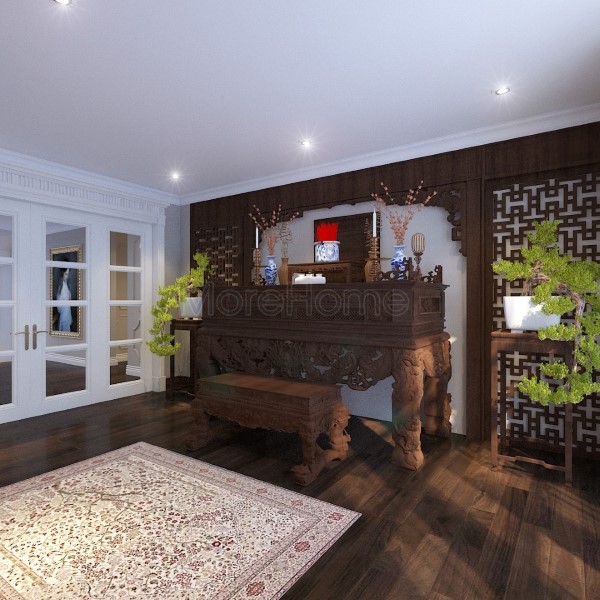 Thường đối với những ngôi nhà biệt thự, các gia chủ thường dành riêng một  phòng ở nơi phong thủy đẹp để thiết kế phòng thờ. Bàn thờ biệt thự được thiết kế vô cùng sang trọng, với chất liệu gỗ tự nhiên tần bì, gỗ sồi nga, óc chó mỹ nhập khẩu cao cấp.