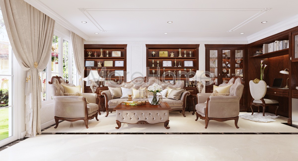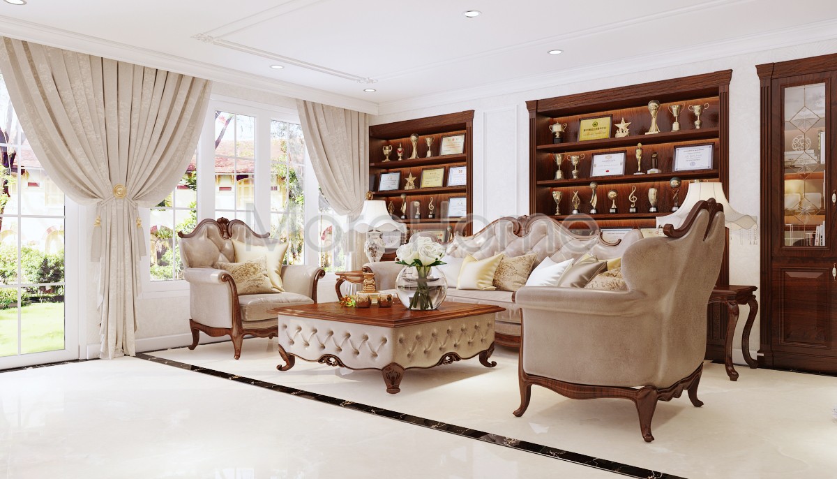 Thiết kế nội thất phòng khách biệt thự Phổ Quang